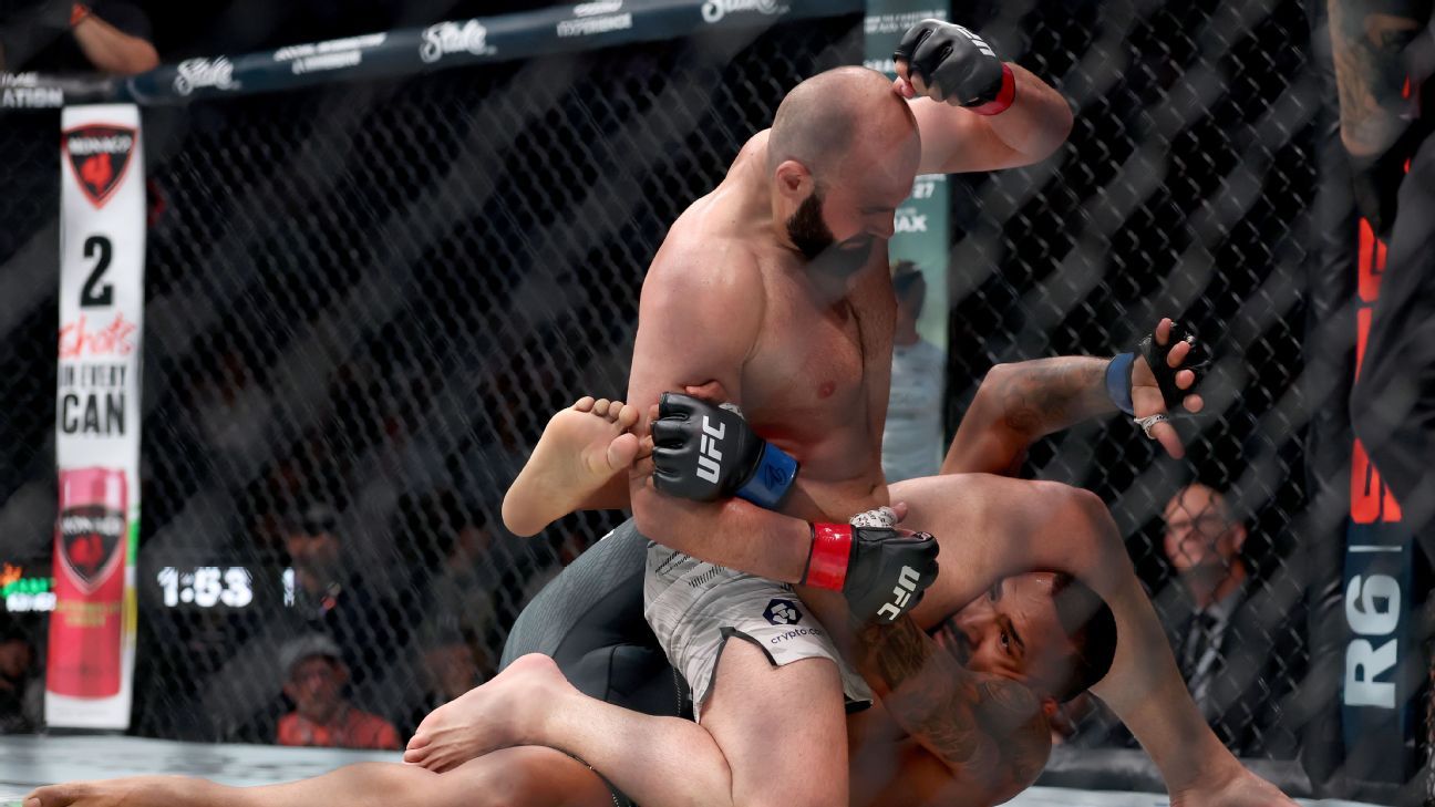 A similar scenario was experienced in the main event of the night, when Merab Dvalishvili frustrated and finished Sean O’Malley with a guillotine in the third round of their rematch for the bantamweight title.