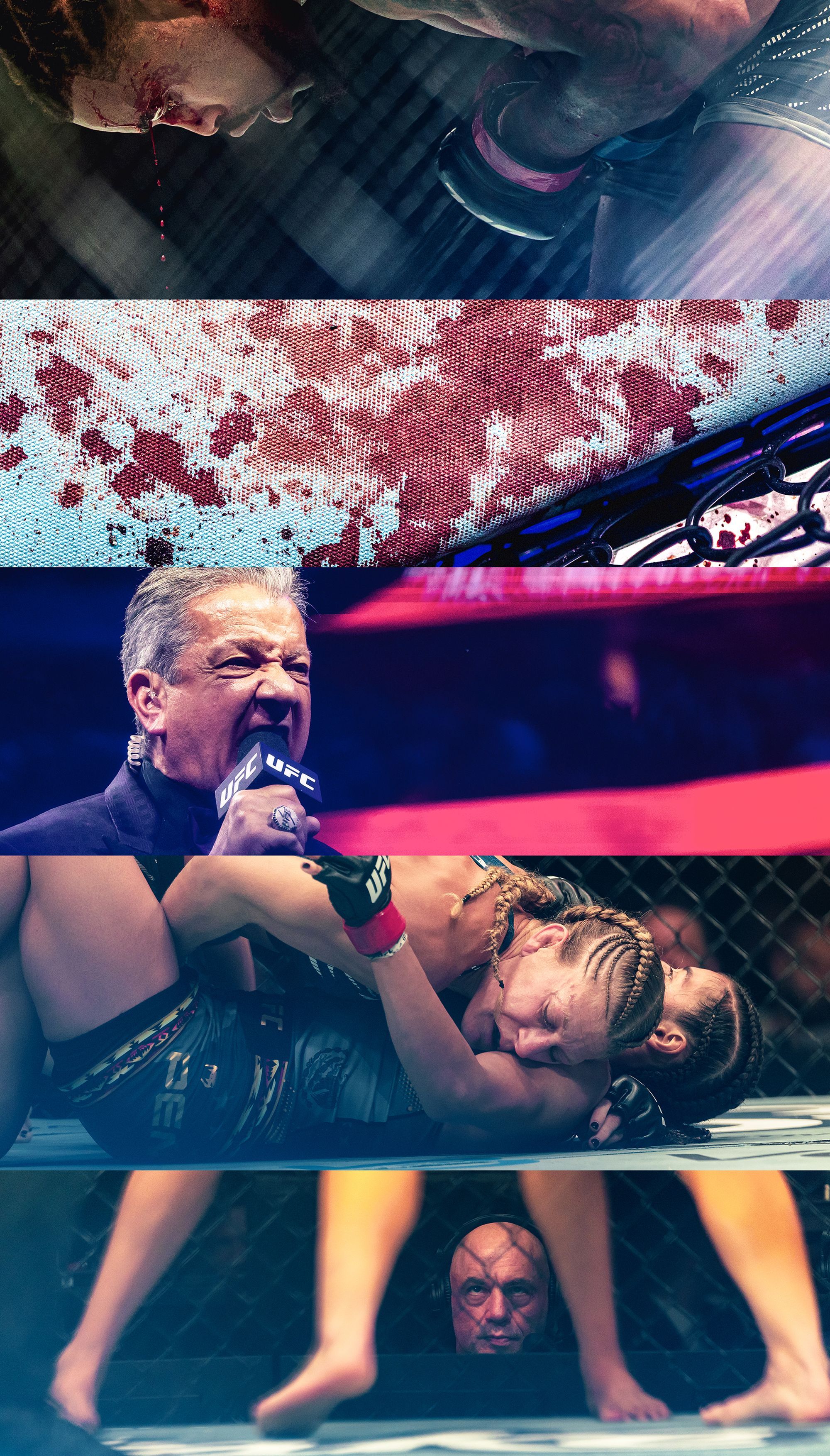 En el segundo asalto de un combate desigual, la cabeza de Khaos Williams sangra profusamente. La lona se tiñe de rojo, ofreciendo un espectáculo visual que podría ser analizado por forenses. El sangrado se extiende por el cuerpo y los guantes de Andreas Gustafson, e incluso gotea por los postes del octágono. Tras la victoria de Gustafson, el equipo de limpieza entra en acción, enfundados en guantes negros y portando toallas blancas. Su misión: eliminar la sangre, un trabajo meticuloso y constante.